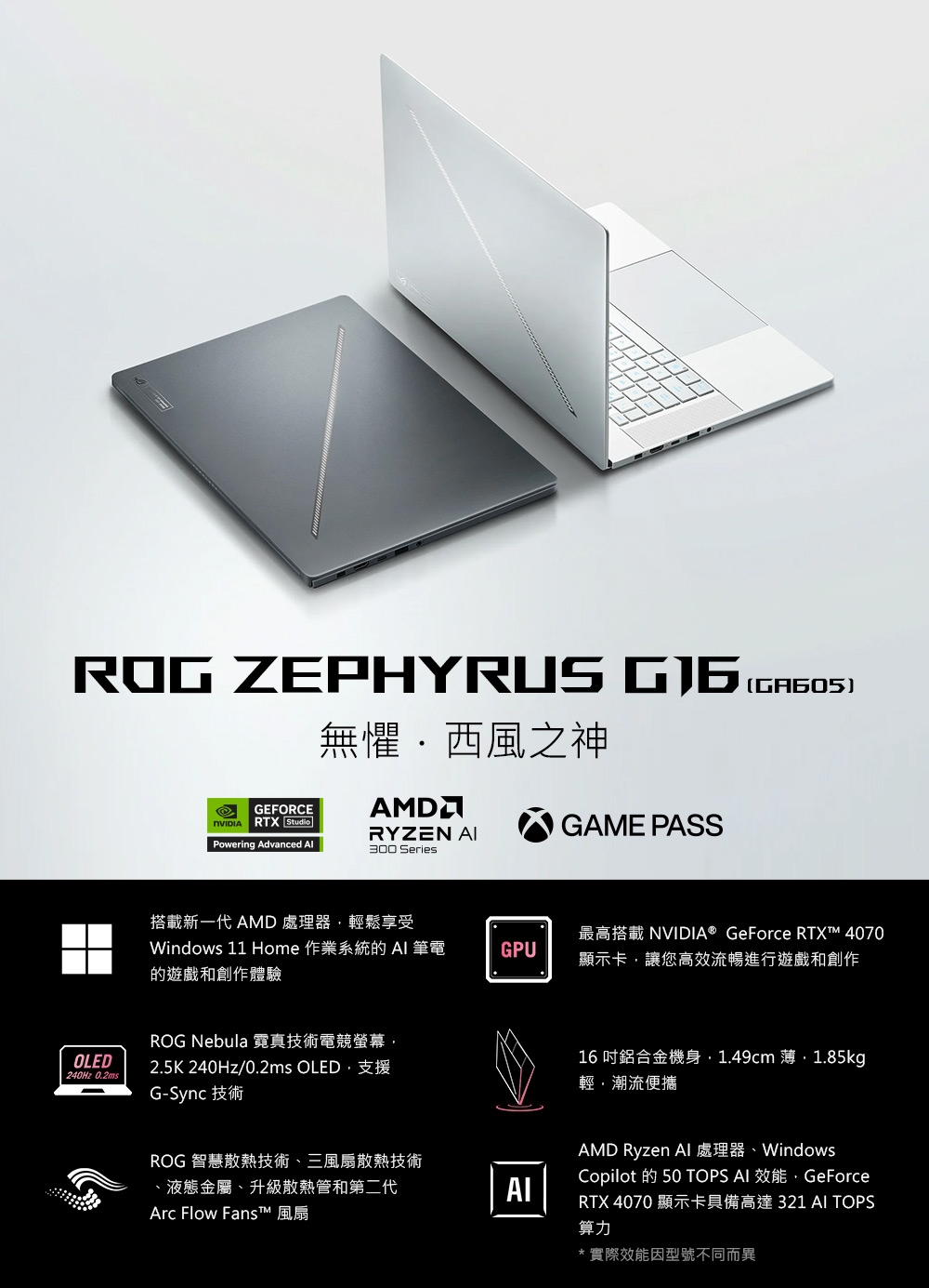 ASUS GA605WV 電競AI筆電 AMD AI 9 HX 370/32G/1T/RTX4060 [福利品]